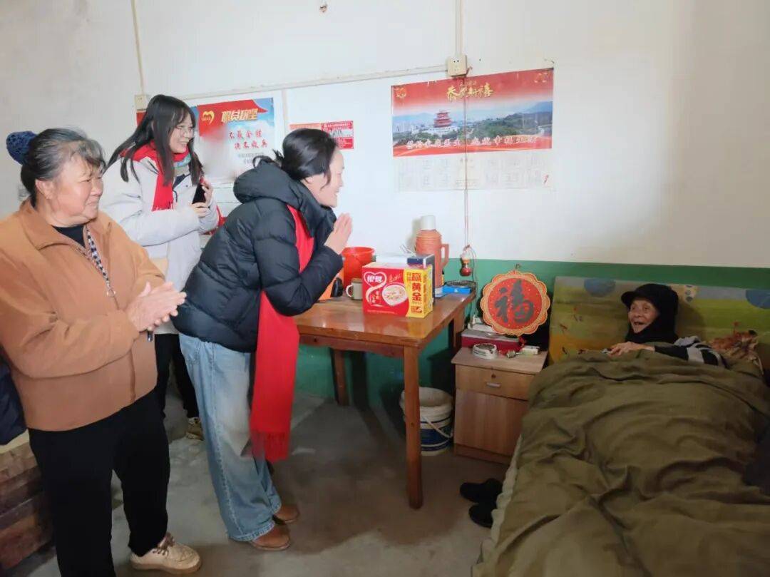志愿者们带着春联、慰问品,走访慰问两村五保户、光荣在党50年老党员,与老人们聊家常,帮助贴春联、挂福字,把年味和暖意送进家门。