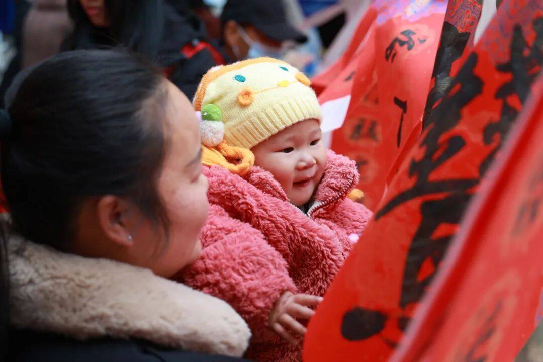 红纸铺展,墨香氤氲,市、区书法志愿者无惧严寒,双手冻僵便贴上暖宝宝继续挥毫,一幅幅寓意“龙马精神事业兴”的吉祥春联、一个个饱满圆润的“福”字跃然纸上,写字台前围满了前来领福的村民,大家争相把新春福气带回家。